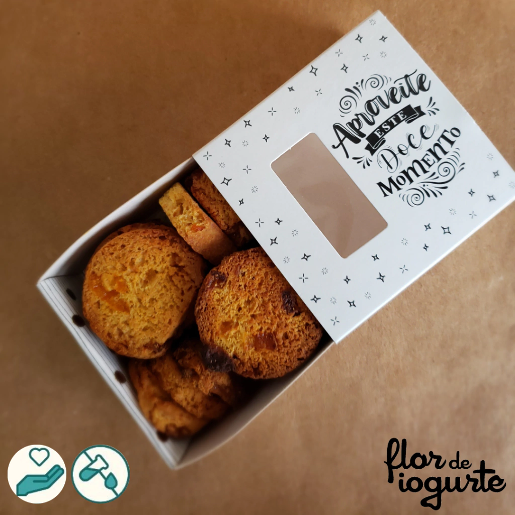 Torradinhas preparadas com fatias de panetone de longa fermentação natural, no sabor Laranja, Figo & Damasco.